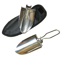 Shovel folds down to 5 1/4" for easy carrying and storage. Flip up the metal handle and snap it into place to use.